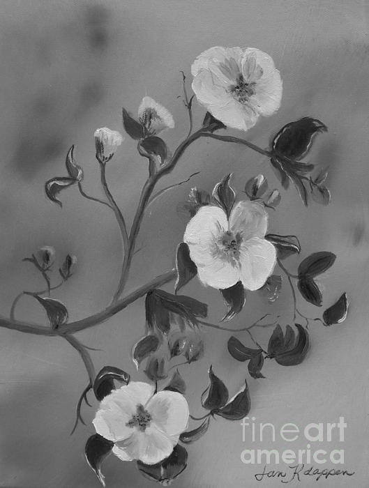 This is a Black and White image of an original oil 14 X 11 on canvas of an apple blossom closeup..