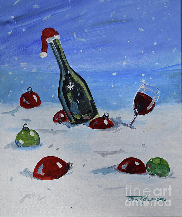 This is a 16x20 Acrylic Painting completed to teach at a Wine and Canvas Class. Wine Bottles and Christmas Ornaments sparkling in the snow at the... more