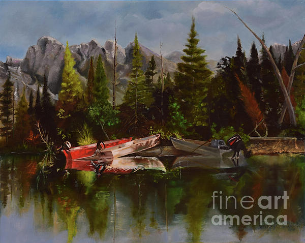 This is a 30 x 24 oil on wrapped gallery canvas, painted on all four sides. The picture I used as a reference was actually a photograph captured by my daughter while taking photos near the Grand Tetons. The image she shot was amazing and captured my attention right away. I did decide to change the colors of one boat to red just for a little pop of color. Thank you to Jessica Brandons Art for allowing me to use her amazing image for my reference photo. You can find her here in Fine Art America. She is just starting her new endeavor in photography and I wish her luck and love in creating more beautiful images to share.